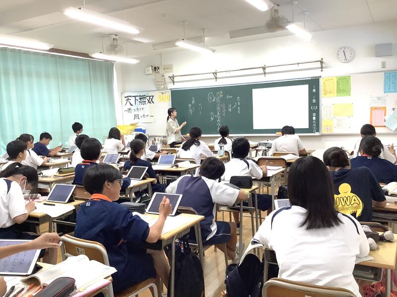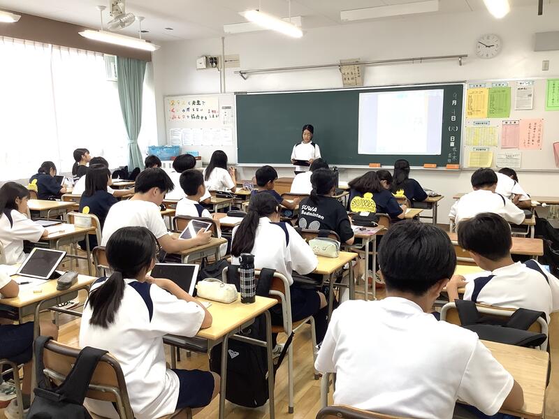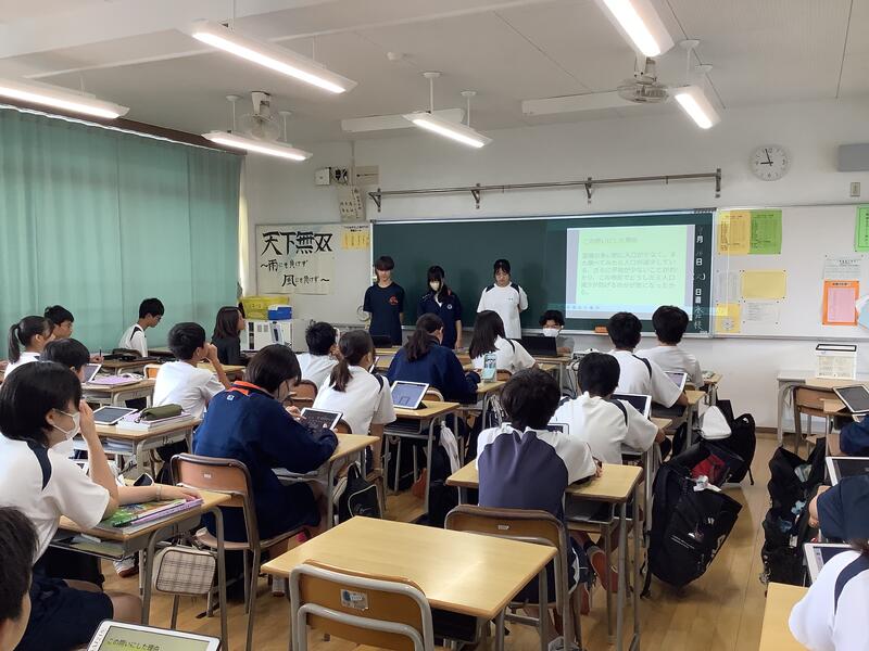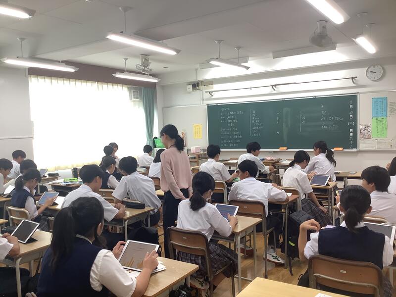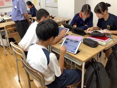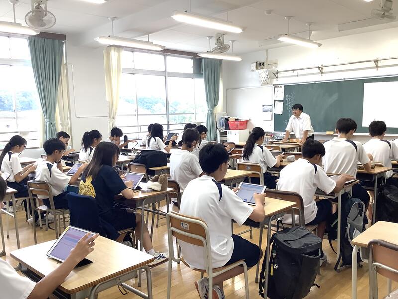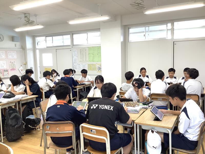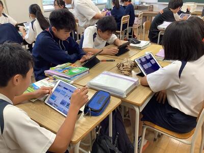 3時間目の2年生の社会科•技術科•国語の授業では、タブレット端末を活用した授業が進められていました。