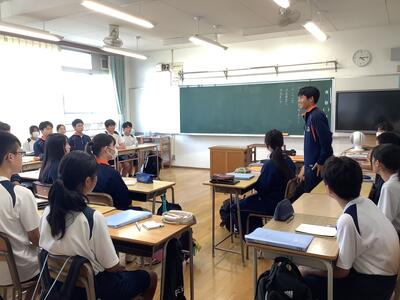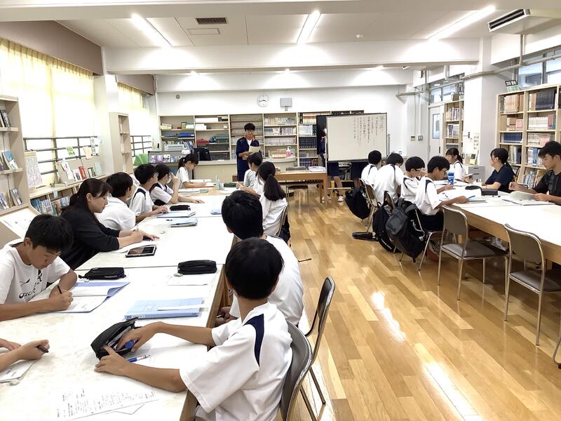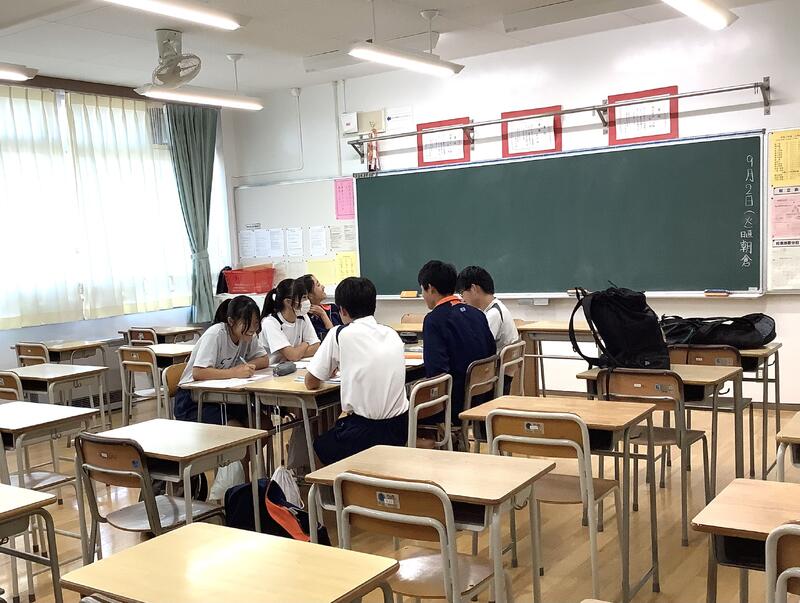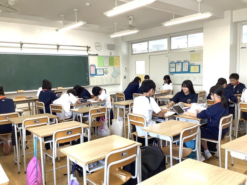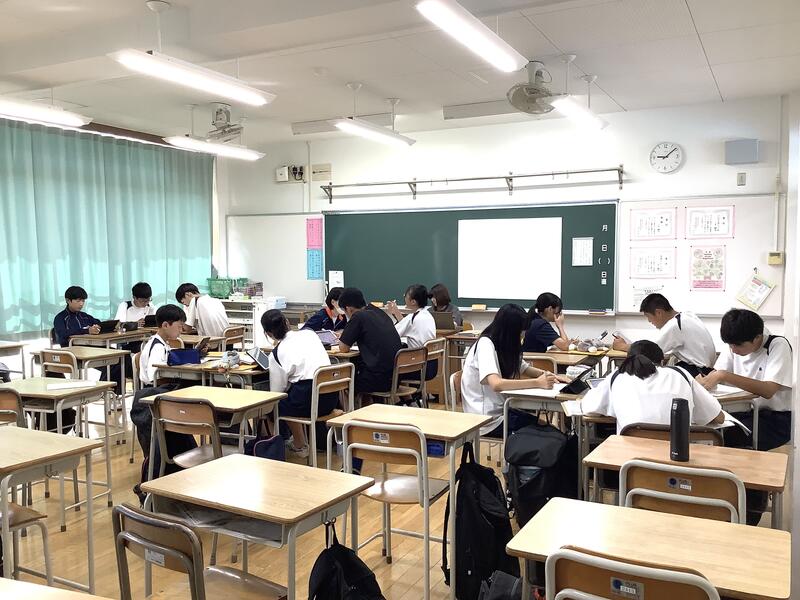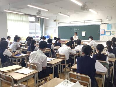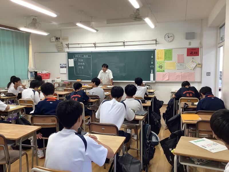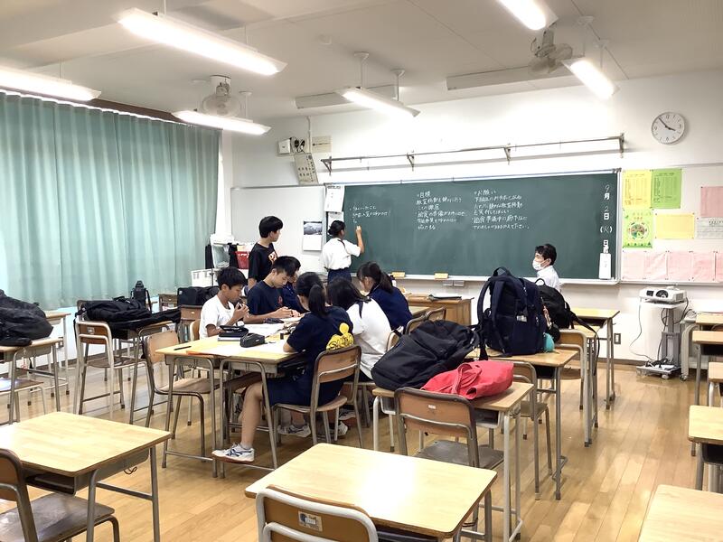 1年生の教室では学級委員が集まり、校外学習(フィールドワーク)の実行委員としてのスタートを切っていました。積極的に参加する様子があり、学年のリーダーとして、期待を抱かせてくれる取り組みになっていました。