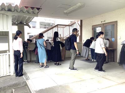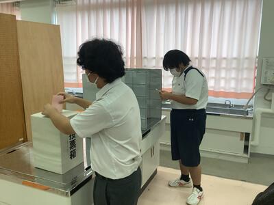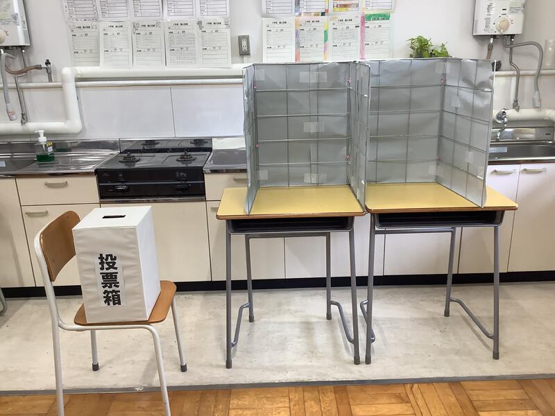 ステップルームにおける期日前投票の様子です。ステップルームでは、下校時間などの関係から、当日の投票は厳しくなっていましたが、担当の教員の立ち会いのもと、無事事前に終えることができました。