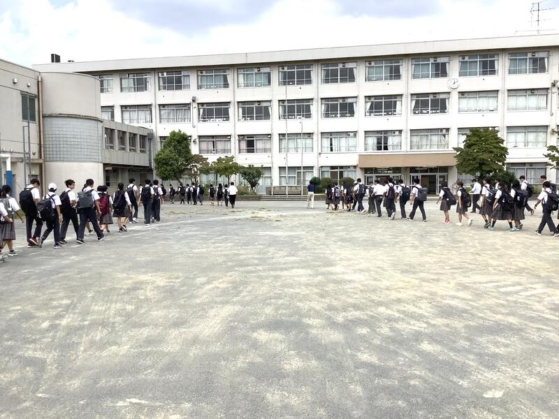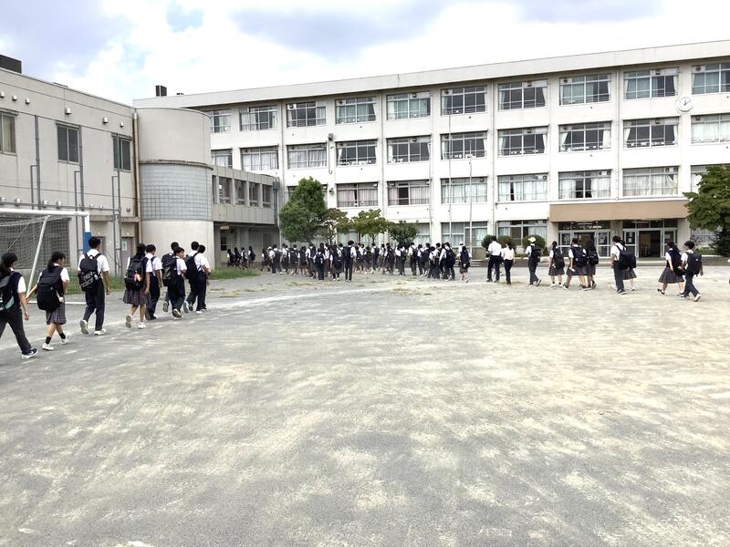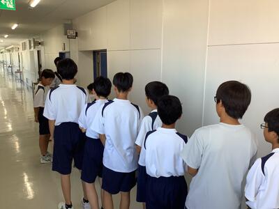 9月1日の防災の日に合わせて、災害時の引き渡し訓練と集団下校訓練が実施されました。多摩市では、震度5で保護者の引き取りもしくは集団下校となります。また、震度6弱以上では全員が保護者による引き取りです。今日は、保護者の方のご都合が合わなかった生徒は、地区ごとの集団下校となりました。保護者の皆様には大変暑い中ご協力いただきました。どうもありがとうございました。