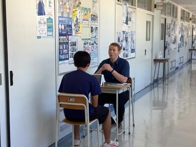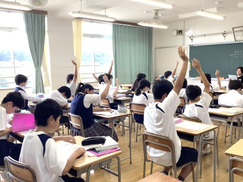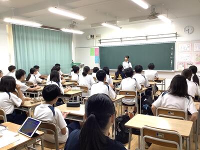 1年生の数学(少人数)では、前に出解答してくれる人の呼びかけに対して、多くの生徒が積極的に手を挙げていました。3年生の英語の授業では、ESAT-Jの対策として、外人講師による対話型のレッスンを行っていました。