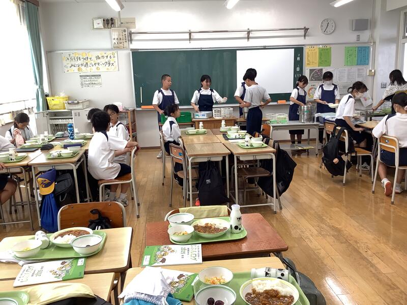 いよいよ今日から2学期の給食がスタートしました。今日は、子どもたちが大好きなカレーライスでした。おかわりする人もたくさんいました。