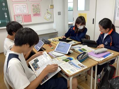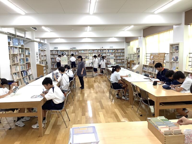 2年生の社会科は、現在教職大学院で研修中の昨年まで本校にいらした先生が、期間限定で授業を受け持っています。各班ごとに東北地方についてテーマを設定して、書籍やインターネットを利用して調べ学習をし、発表につなげていきます。