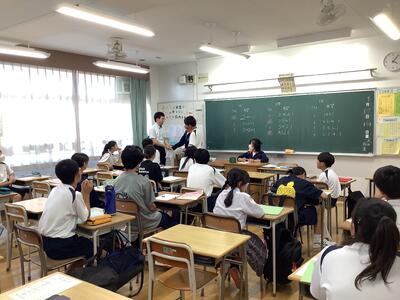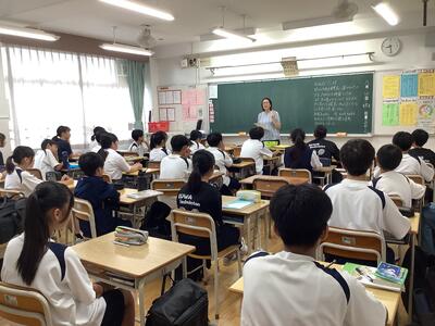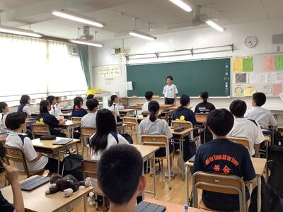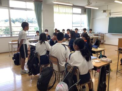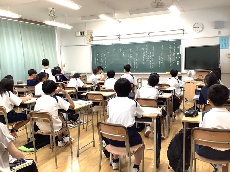 5組の学活では、夏休みの出来事をみんな前で発表して、それぞれに質問を受けていました。いろいろなエピソードを聞くことができました。