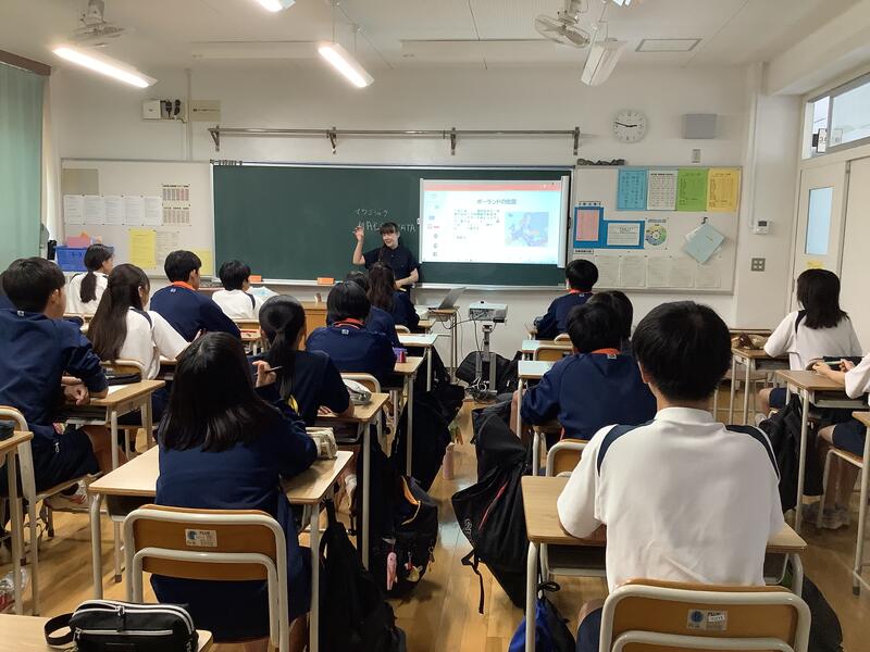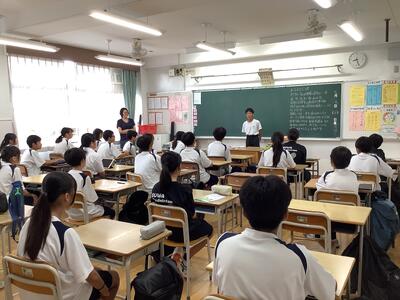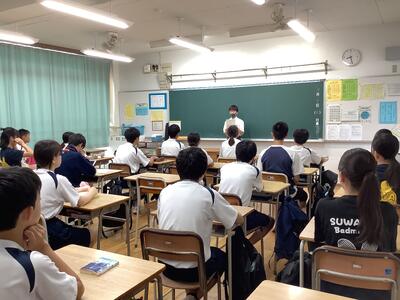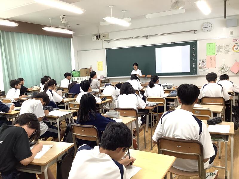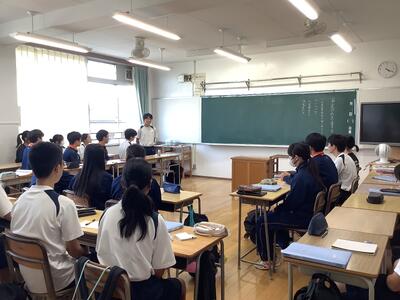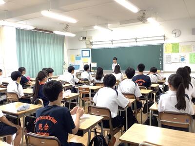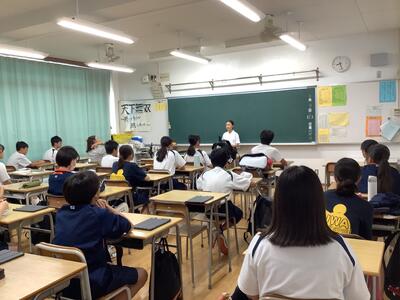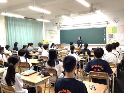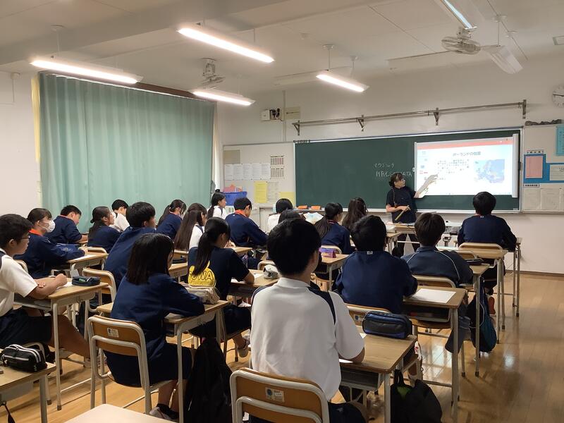 3年生の総合的な学習では、国際理解教育として、メキシコ•ポーランド•中国の方を講師としてお招きして、それぞれの国の歴史や文化を中心にお話をしていただきました。どの方もとても日本語が上手で、また、話の内容も工夫されており、生徒は興味深く聞いていました。講師の方々からは、誰一人集中を切らすことなく、しっかりメモを取りながら聞いていて素晴らしい生徒だとほめてくださいました。