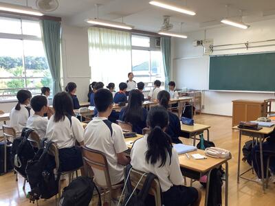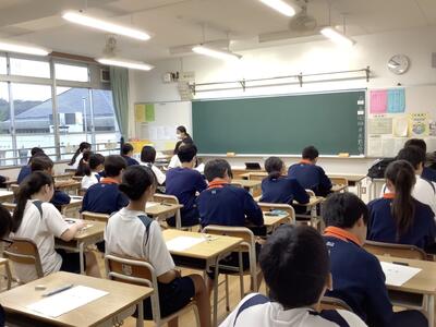 2年生は、総合的な学習の時間を使い、11月5日から3日間実施される職場体験に向けて、しおりを使ってのオリエンテーションが行われました。体験する事業所のある地域ごとに教室に分かれて、担当の先生から説明をうけていました。