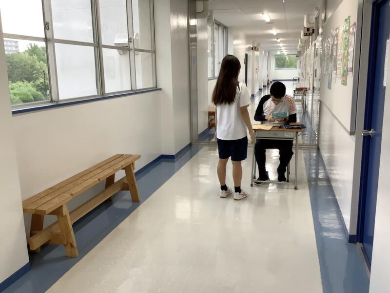 今日からは本格的に授業も始まりました。数学の授業では、積極的に手を挙げて答える様子が見えました。また、英語ではまとめの小テストに真剣に取り組んでいました。