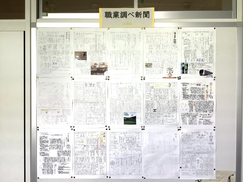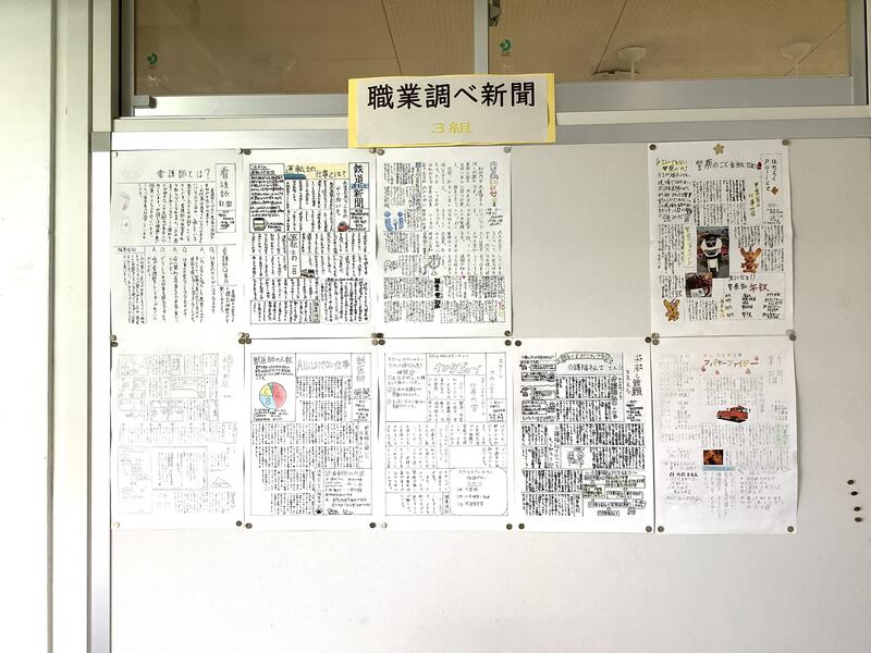 1年3組前の廊下には、個々に調べた職業調べが掲示されています。保護者の皆様、20日の授業公開日の際には、ぜひじっくりとご覧になってください。