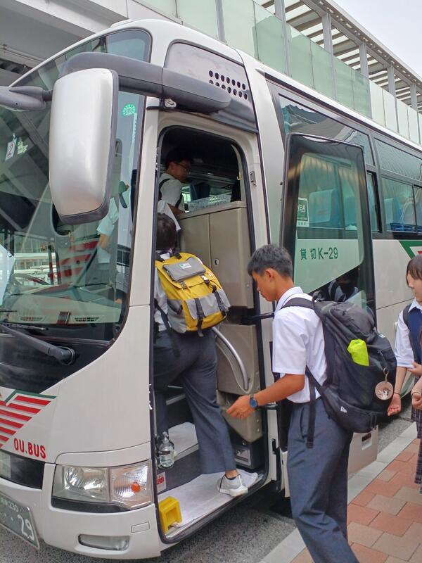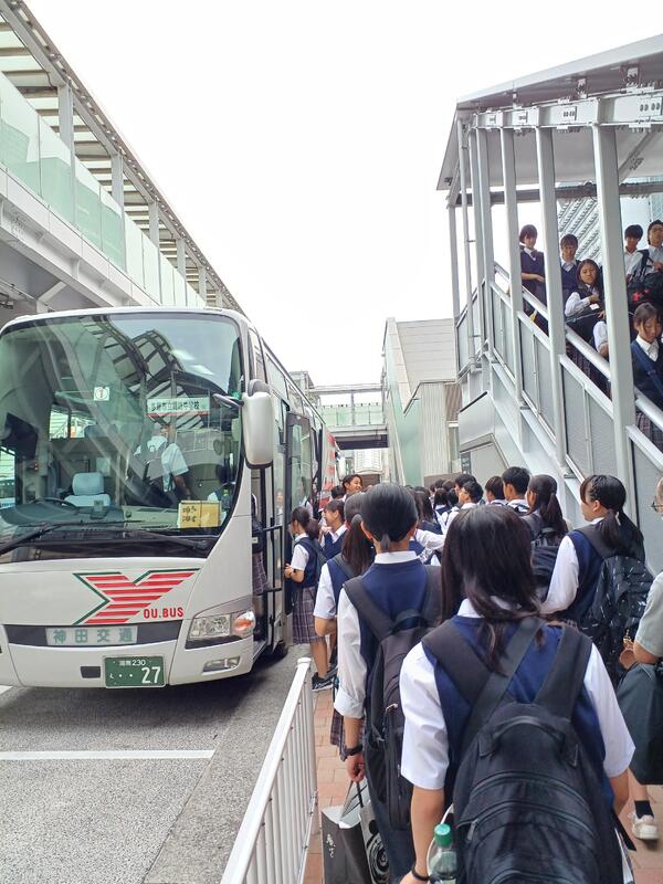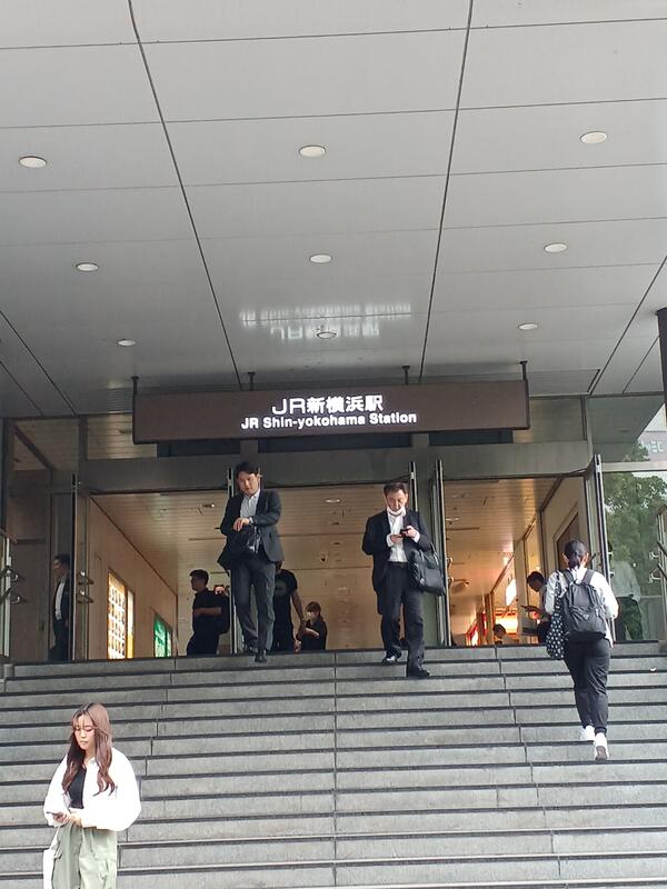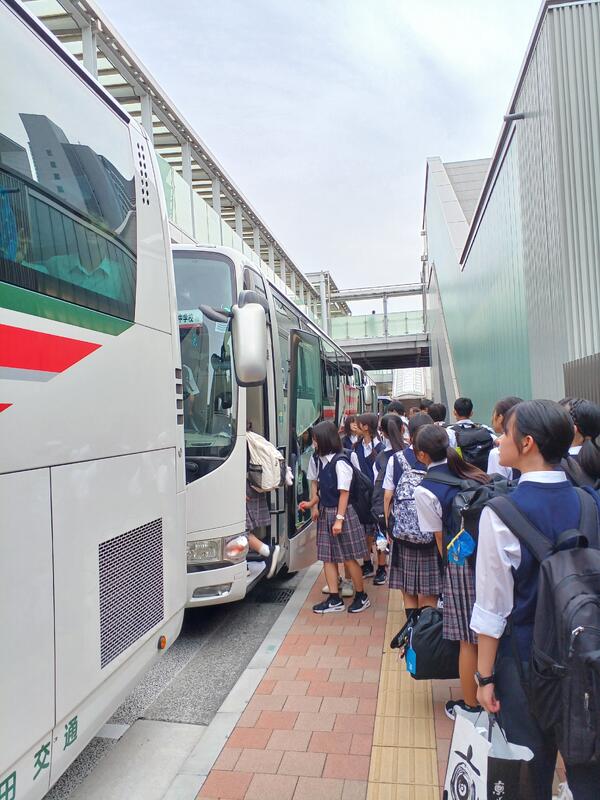 時間通りに新横浜に到着しました。これからバスへ移動し、一路多摩へ向かいます。