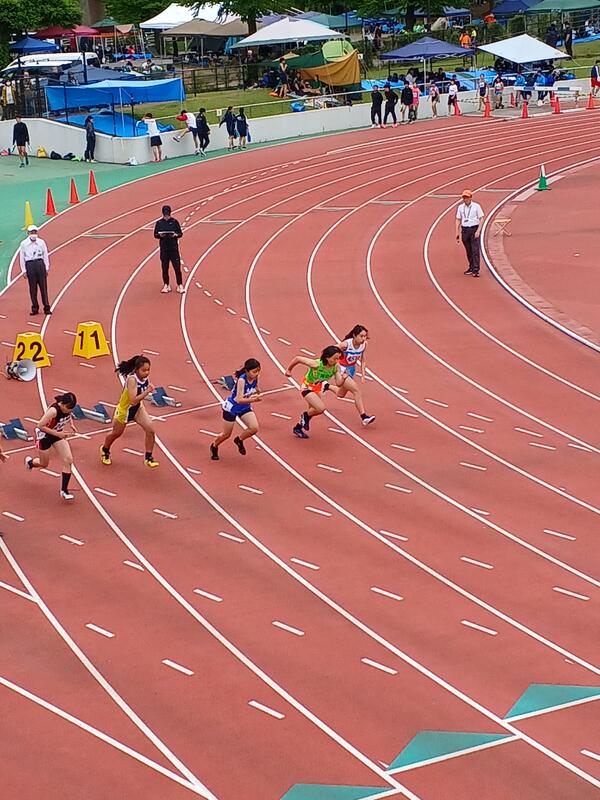 陸上部は、地域別陸上競技大会の第1日目に参加しています。この大会で標準記録を突破すると都大会への出場権を得ることができます。