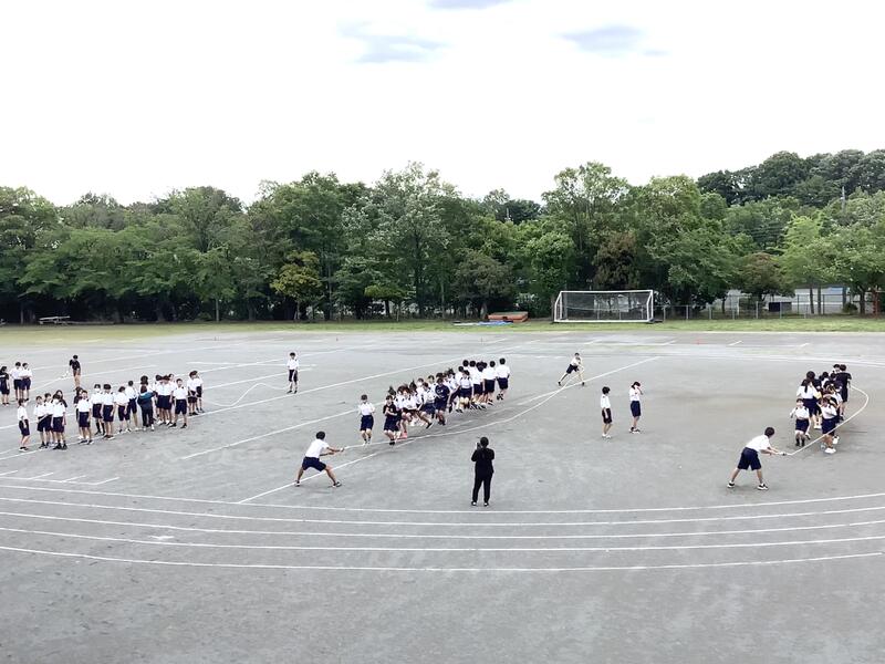 1年生の練習では、「台風の目」の練習が行われていました。左右に移動しながら走ったり、コーンを回るのは難しいようでしたが、大いに盛り上がっていました。