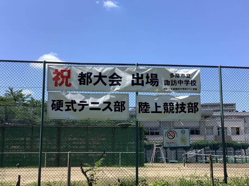 陸上部が昨年度に引き続き、都大会(総合体育大会と全日本中学校通信陸上競技大会)への出場を決め、横断幕を飾ることができました。都大会でもいい成績を残せるよう祈っています。