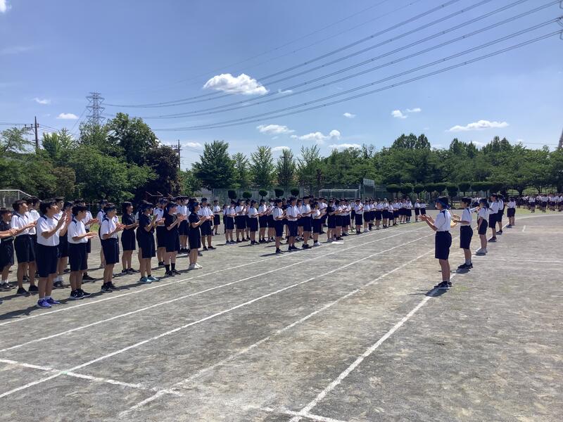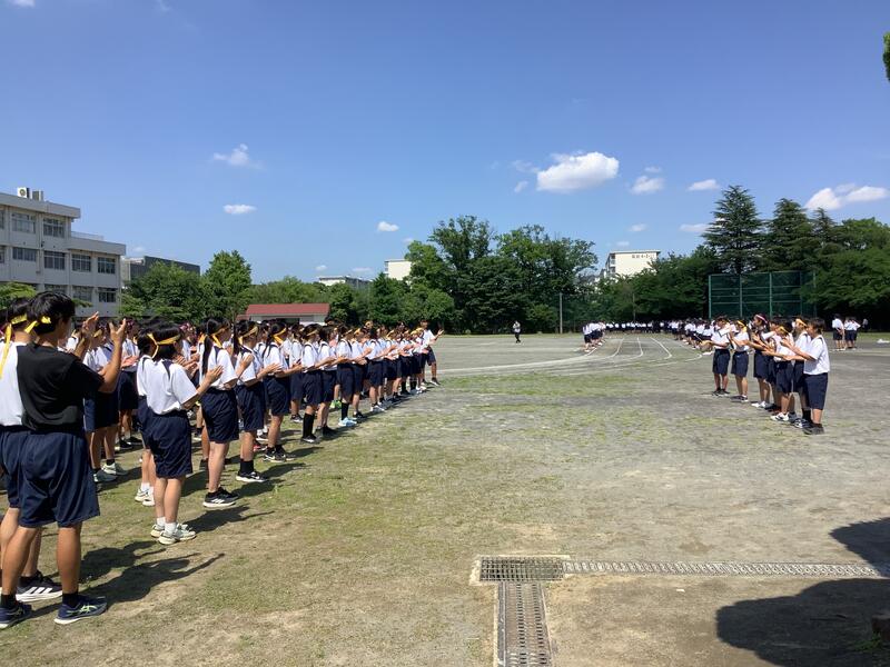 3年生の学年練習の様子です。修学旅行からしっかりと切り替えて、練習に臨んでいました。並んだ列もきれいに真っすぐに整っています。