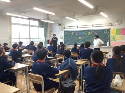 3週間の教育実習最後の日となりました。朝の学活では、生徒からのお礼のメッセージ示されていました。