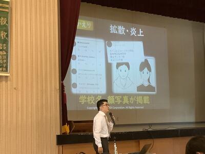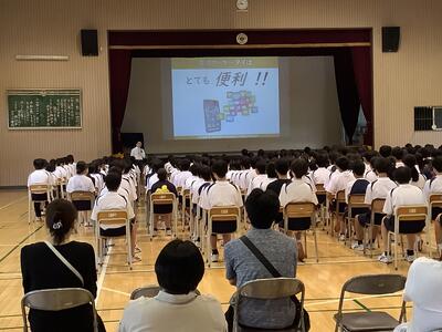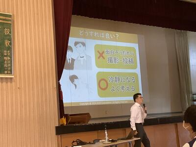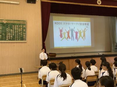 KDDIの認定講師の方を講師としてお招きして、セーフティ教室を開催しました。インターネットにかかわるトラブルの危険性や対処法について、動画を交えながら分かりやすく説明していただきました。講演会終了後には、保護者向けに補足説明会も開かれました。