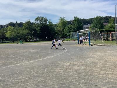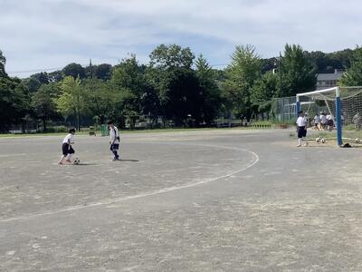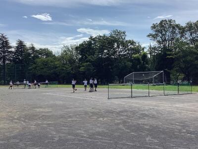 夏休み前半の練習最終日に練習試合が行われました。3年生が引退して、少ない人数となりましたが、暑い中とても頑張っていました。