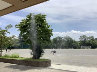暑い中ですが、休憩と水分補給をしっかりととり、気温や暑さ指数をチェックしながら、様々な工夫を行って活動しています(朝早い時間からの活動•ミストシャワー•クーラールームの設置等)。テニス部は、先週の大会で勝ち上がった生徒が8月4日に決勝ラウンドに臨みます。
