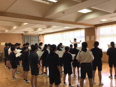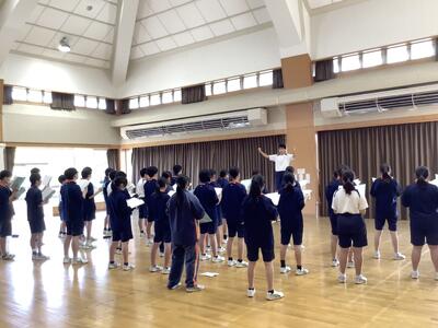 昼休みに合唱部が練習を行っていました。少ない人数ながらも、きれいな歌声を響かせていました。