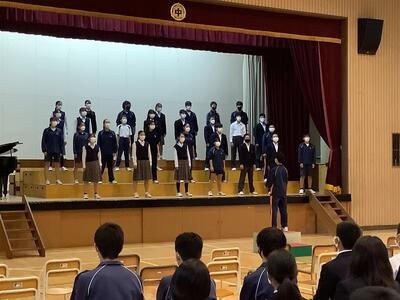感染対策のため、3年生は教室でリモートで参加しました。校長先生からは2学期の振り返りと3学期に向けて励ましの言葉があり、その後冬休みの生活について生活指導主任の先生からの話がありました。