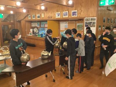 2年生の音楽の授業では、箏で「さくらさくら」を演奏をしていました。2.3人組で交代しながら、教え合いながら繰り返し練習していくうちにどんどん上達しています。外は雪が降っていますが、春を先取りです。