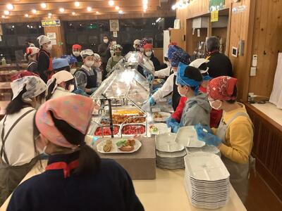食事係の生徒たちがテキパキと準備してくれたおかげで、予定より早く夕食が始められました。