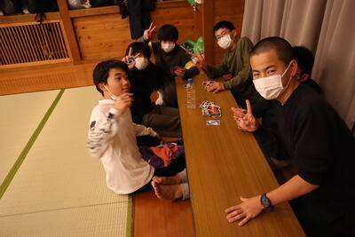 部屋ではカードゲームなどをして過ごしています。