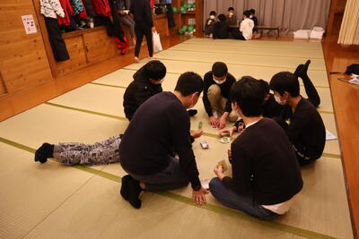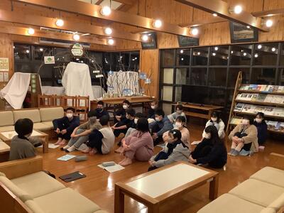 室長会が行われています。部屋での過ごし方や、明日の活動に向けての注意点について連絡がされました。