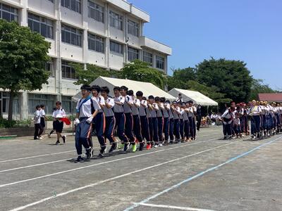 2年生、5組の全員リレーです。