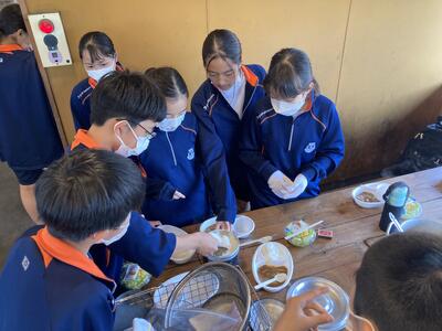 1年生の総合的な学習の時間では、校外学習のまとめの一環として、食品ロスについて考える授業が行われていました。とても活発に話し合いが行われていて、グループで話し合ったことを発言する場面ではたくさんの手が上がっていました。実際に家庭で取り組める食品ロスを減らす活動として、「生ごみなどを肥料として再利用する」「事前に冷蔵庫の中を確認し、必要以上買わない」などが上がりました。今日考えたことを是非、家庭で実践してほしいと思います。