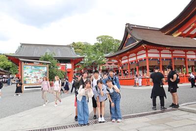 伏見稲荷は外国からの観光客の方々と修学旅行生で賑わっていました。(立川)
