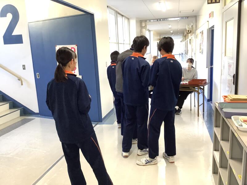 12/12 朝の様子 投稿日時 : 12/12 副校長 1月23日に実施される漢字検定の申し込みが、登校時の職員室前で行われました。今回は、例年以上の申し込みがあったようです。あとひと月しっかりと準備をして臨んでほしいと思います。