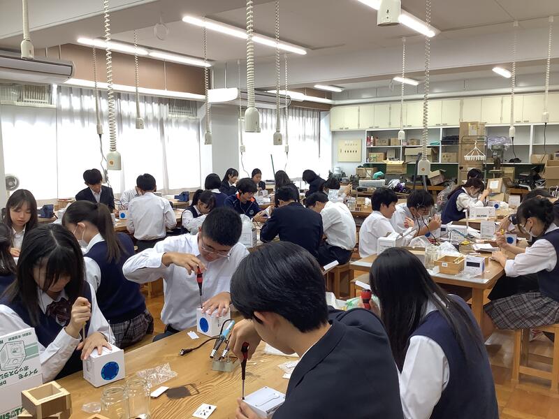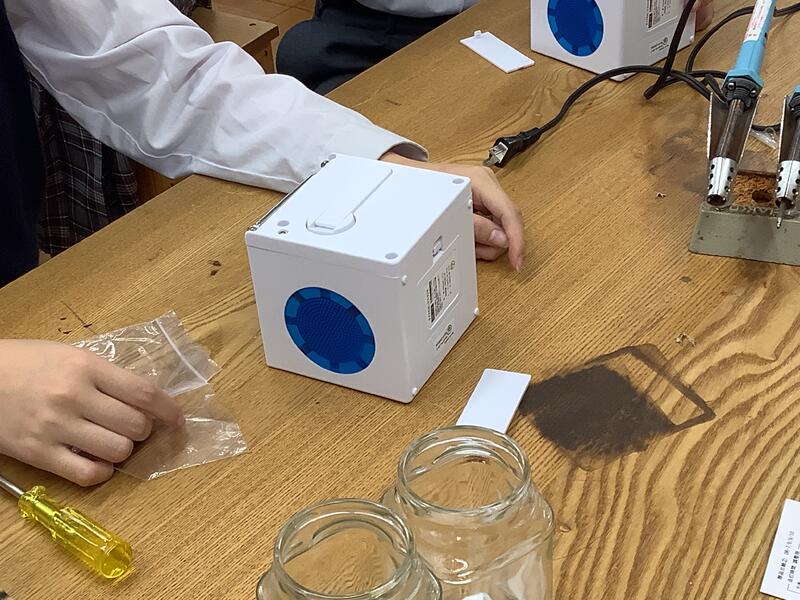 3年生の技術の時間では、ラジオキットの完成に向けて組み立てが最終段階に来ていました。