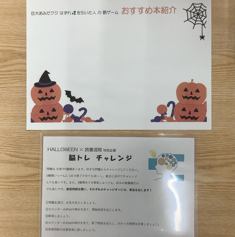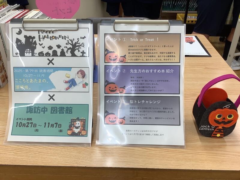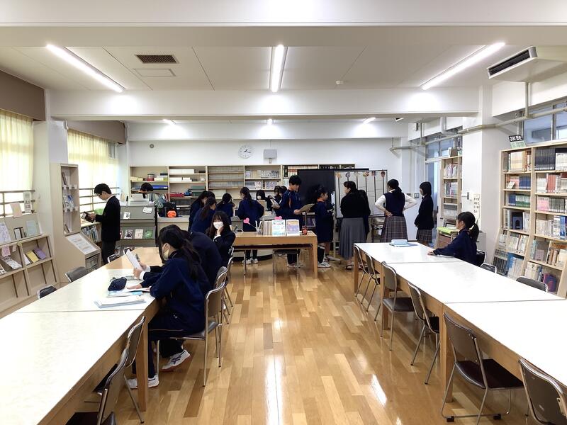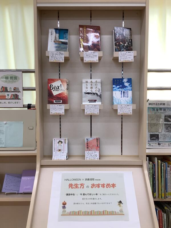 今日から図書室でのイベントがスタートしました。盛りだくさんの催しで、早速多くの生徒が集まっていました。楽しみながら本に親しむ工夫がさまざまになされています。