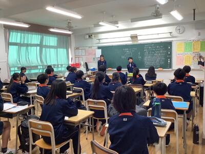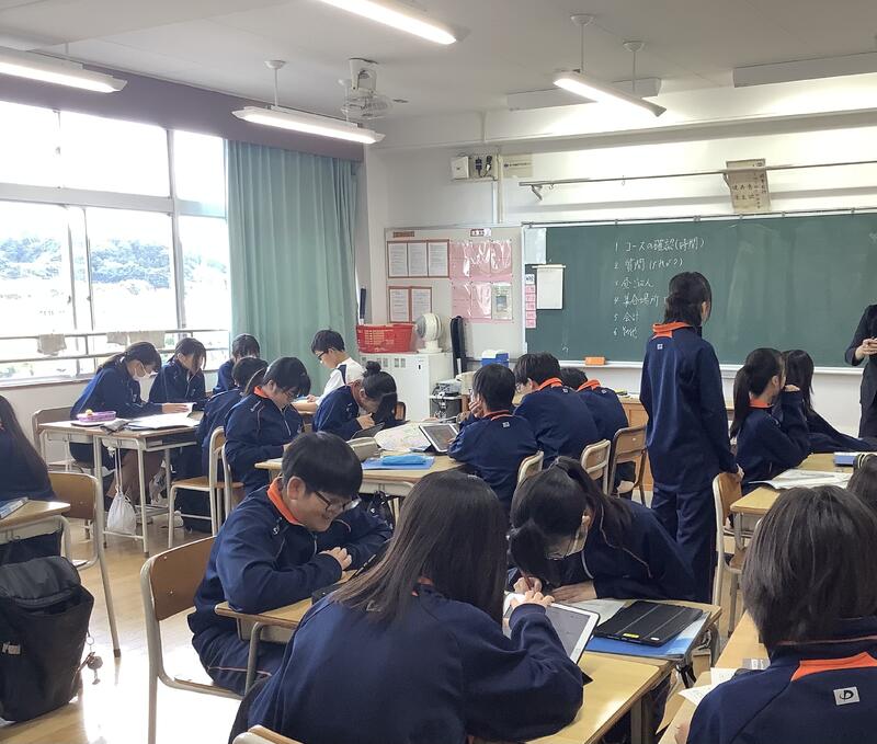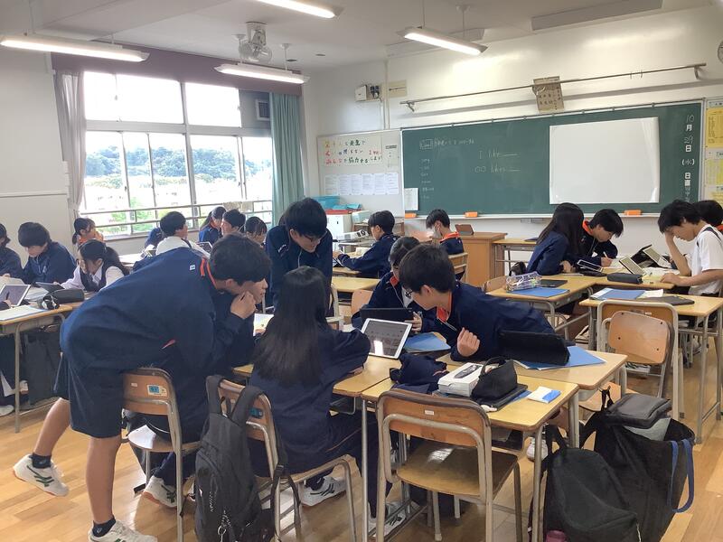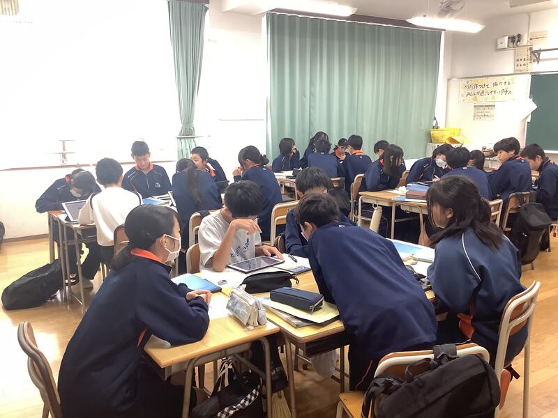 1年生は11月7日の校外学習の班ごとの行動計画表を作成していました。どの班もお互いにしっかりと意見を出し合って、話し合いが進められていました。
