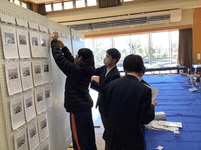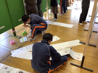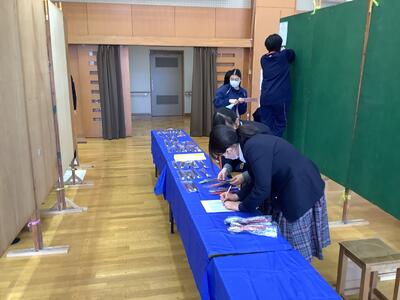 明日から始まる作品展の準備が進められています。係の生徒たちがとても楽しそうに作業をしていました。