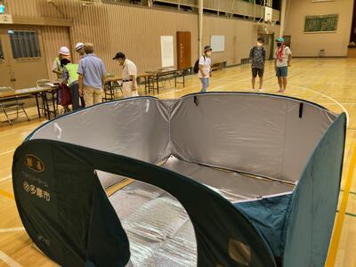 地域の方と市の職員の方々で避難所の開設と安否確認結果集約の訓練を本校で行っています。