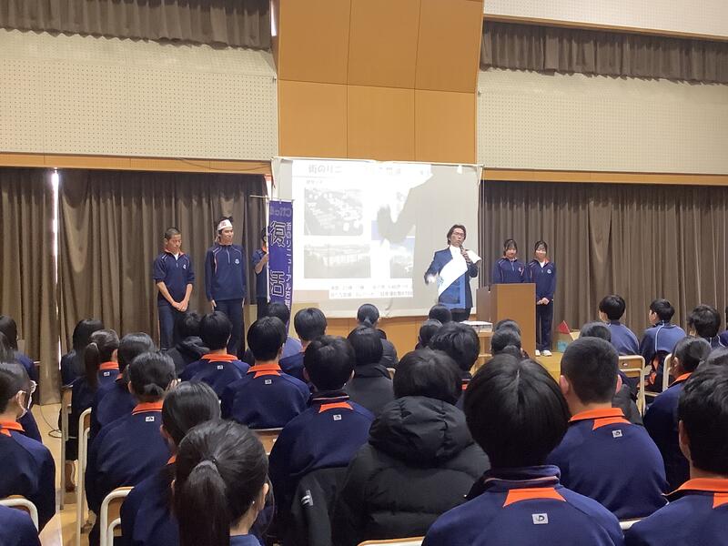 学期末にあたり、各クラスの学級委員から2学期を振り返って、良かったところと成果、反省点や課題などの発表がありました。どのクラスもしっかりと分析し、これからの心構えや行動について呼びかけができていました。それを聞く集団としての態度も立派でした。