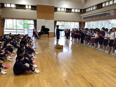 音楽会に向けての練習が始まりました。今日は、縦割り練習を行ってました。3年生の迫力ある歌声に1年生たちはとても驚いていました。とてもよい刺激になったようです。本番まであと2週間、さらによいものを作り上げてください。