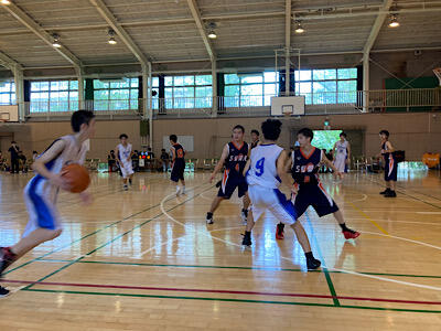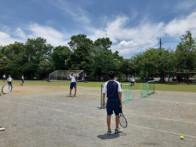 昼休みです。夏空の下、先生も一緒にバレーボールを楽しんでいます。その他、フライングディスクやサッカーをしている生徒もいました。楽しみながら、コロナに負けない体力をつけましょう。