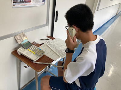 2年生が職場体験の事業所に電話をしていました。事前打ち合わせに行くための電話だそうです。緊張した様子で時間、持ち物などを確認していました。職場体験は11月に実施予定です。