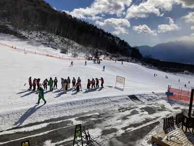 ゲレンデの最高地点まで来ている班がありました。みんなどんどん上達しているようです。