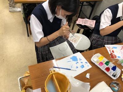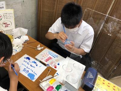 できあがった風鈴に絵付けをしています。