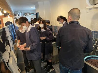 藍染の体験の様子です。