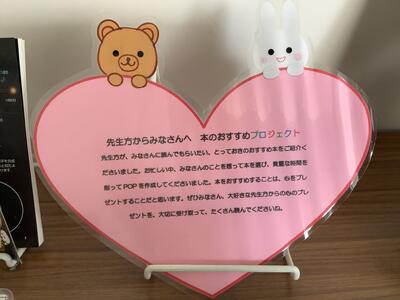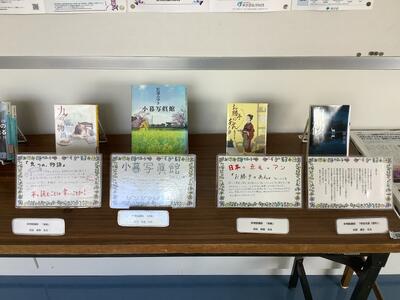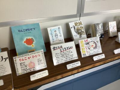 職員室前の廊下に、先生たちからのおすすめ図書コーナーが設けられていました。先生たちが作成したPOPを見るだけで、その本に興味が湧いてきます。休み時間にぜひ立ち寄ってみてください。