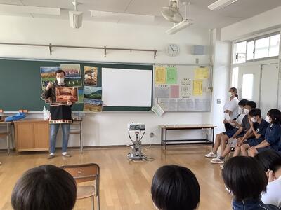 2時間目は、留学生の方々がそれぞれの国を紹介してくれました。留学生たちが日本語で自己紹介を始めると、「えっ?」とどよめきが。実は生徒たちは留学生の方が日本語を話せることを知らなかったのです。一気に和やかな雰囲気になり、とても楽しく過ごすことができました。