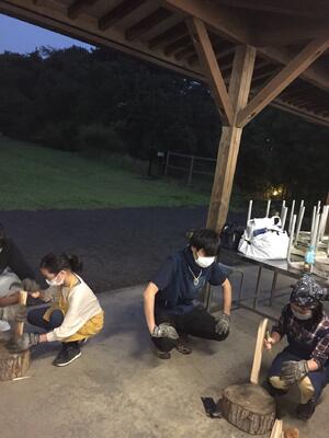 15:00頃宿舎に到着し、野外炊飯場で夕食作りです。