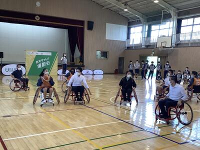 ボッチャ、車いすポートボール、車いすリレーなどのパラスポーツを楽しみました。最後には先生チーム対生徒チームの対戦もあり、大盛り上がりでした。