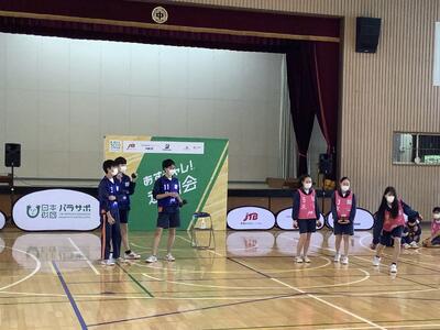 3年生と5組生徒が「子どもを笑顔にするプロジェクト」の一環で、「あすチャレ運動会」に参加しました。コロナ禍で行事等にさまざまな制約のある学校生活を送っている生徒たちに、「多様な体験活動を通じて笑顔になってほしい」という願いから企画されたものです。