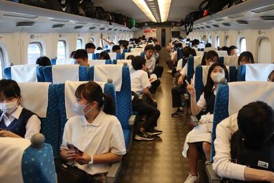 帰りの新幹線でもみんな元気です。(立川)