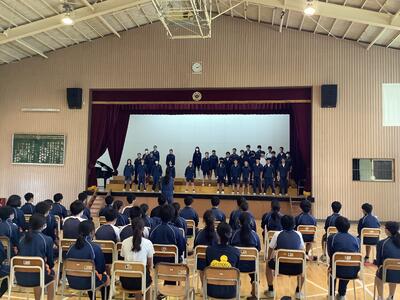 3年生の学年リハーサルが行われ、立ち位置の確認等をしていました。3年生全員で唄う学年合唱はとても迫力がありました。当日が楽しみです。